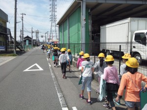 アピタ江南西店まで歩いて15分ほど、2列に並んで事故のないように注意しながら向かいました。