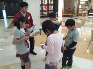アピタに到着してからはグループに分かれて、お店の中の工夫を探しました。校外学習のときの探検バッグは必需品ですね。
