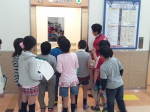 エレベーターにはいろんな工夫があります。お店にはいろんな方が買い物にくるので、いろんなことを想定して利用しやすいようにされています。エレベーターになぜ鏡があるのか、子ども達に投げかけ、考えてもらいました。