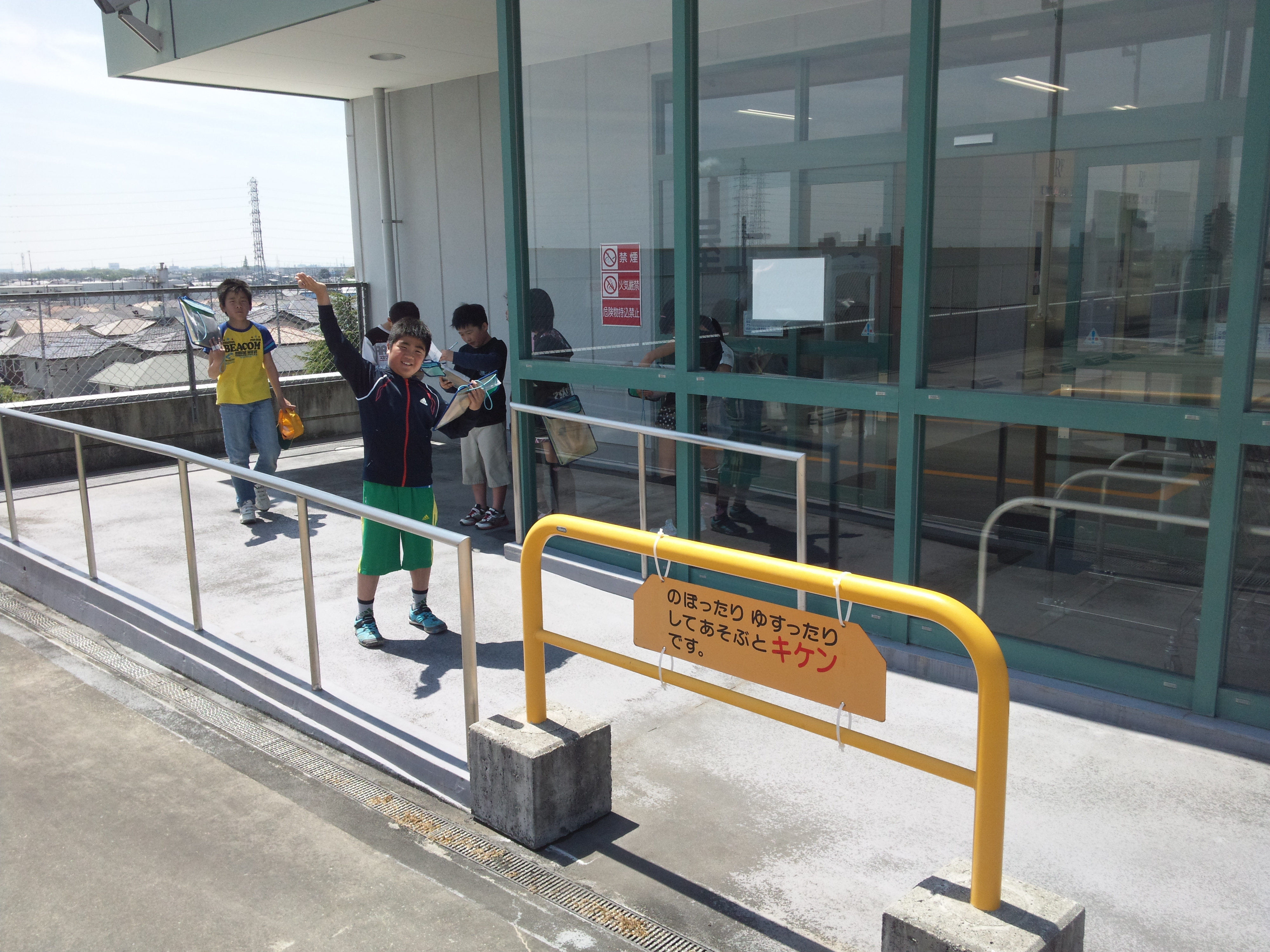 駐車場の屋上にも行きました。子ども達はスロープに注目していましたが、私からは1階の入り口全てにスロープはあったのかを投げかけてみました。お店の中にどんな工夫があってもお店に入ることができなければ、全て無駄になってしまうのですね。