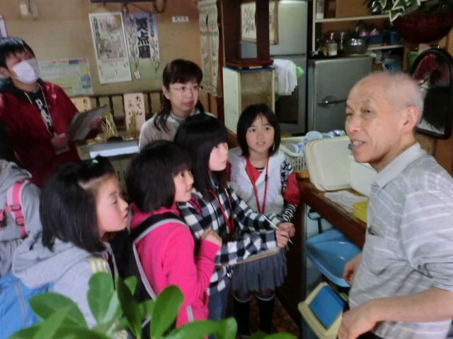 ウォークラリーの途中に、町の人にインタビューということで、お店に立ち寄りました。