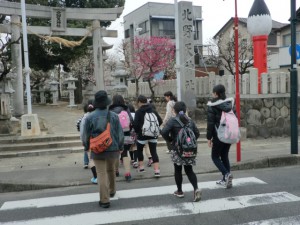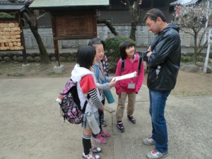 その後に、筆まつりで有名な北野天神社へ行きました。神社の中でも問題を出しました。