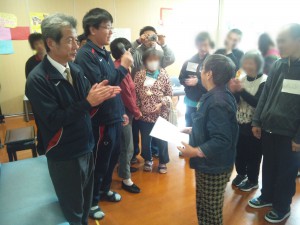 3位以上のチームには賞状が渡されました。利用者みんなが拍手をしてお祝いしていました。