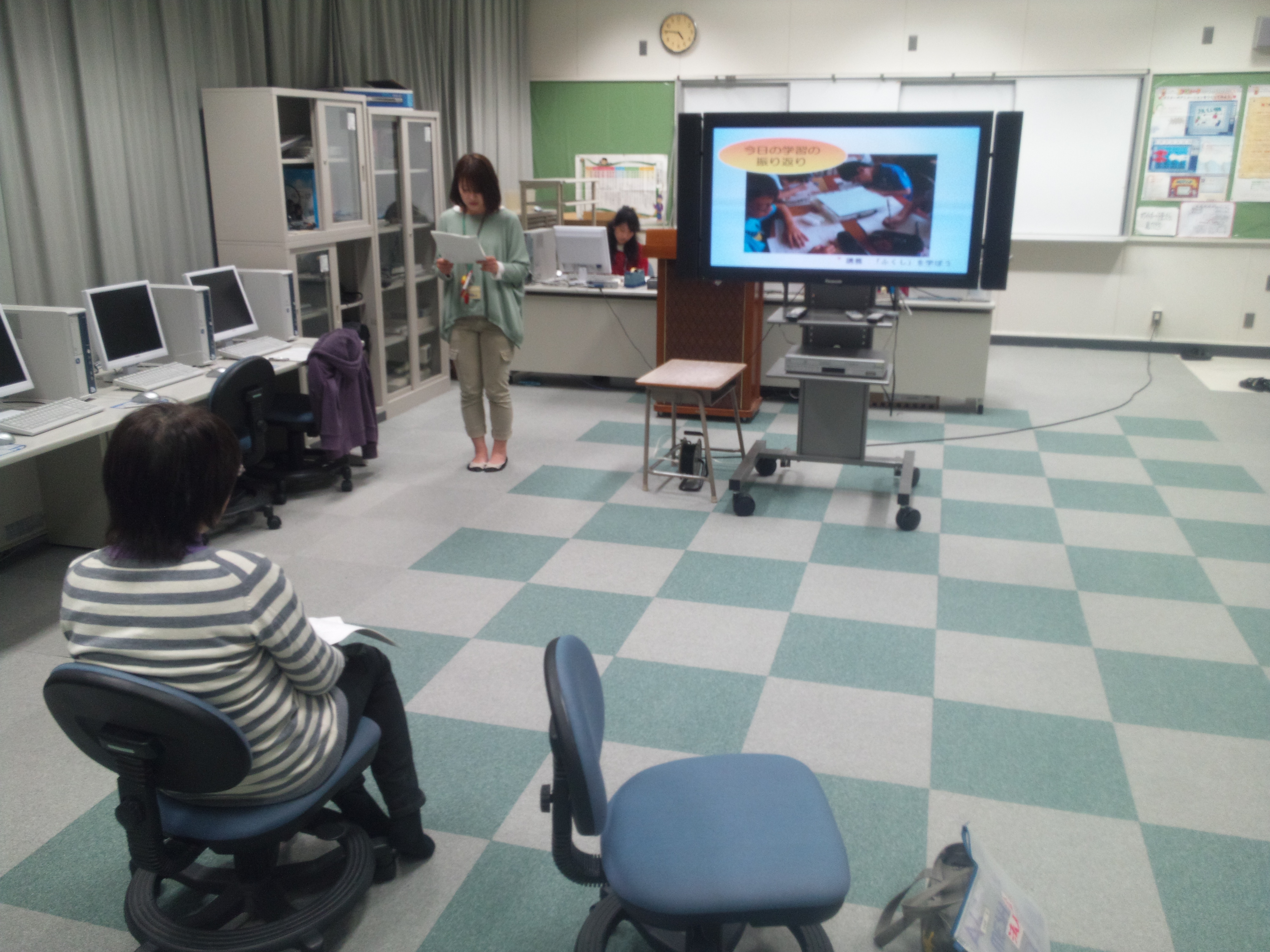 夕方、布袋北小学校にお邪魔し、日曜日に名古屋で開催される「福祉教育・ボランティア学習のつどいinあいち・なごや」の分科会の実践報告のリハーサルを行いました。