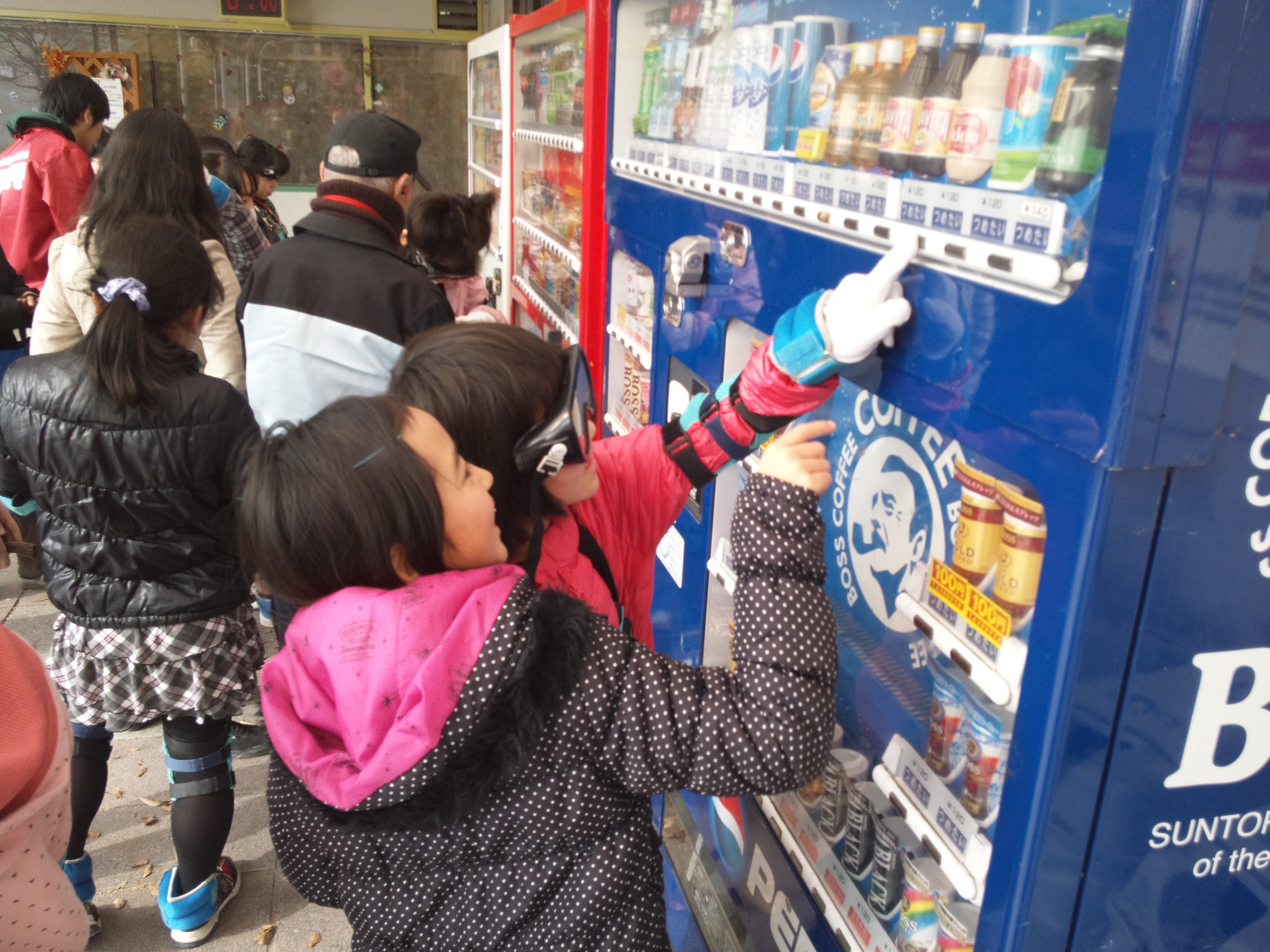 江南団地内の自動販売機でジュースを買う体験を行いましたが、表示が見えにくいのと、高いところのボタンを押すのが大変そうでした。高齢者の方の気持ちが理解できました。