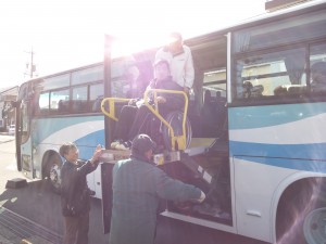 今日は江南市の福祉バスを借用しました。車いすごとバスに乗車できるので、良い体験ができました。