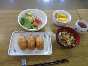 メニューは豚汁、いなり寿司、ポテトサラダ、はっさくを作りました。