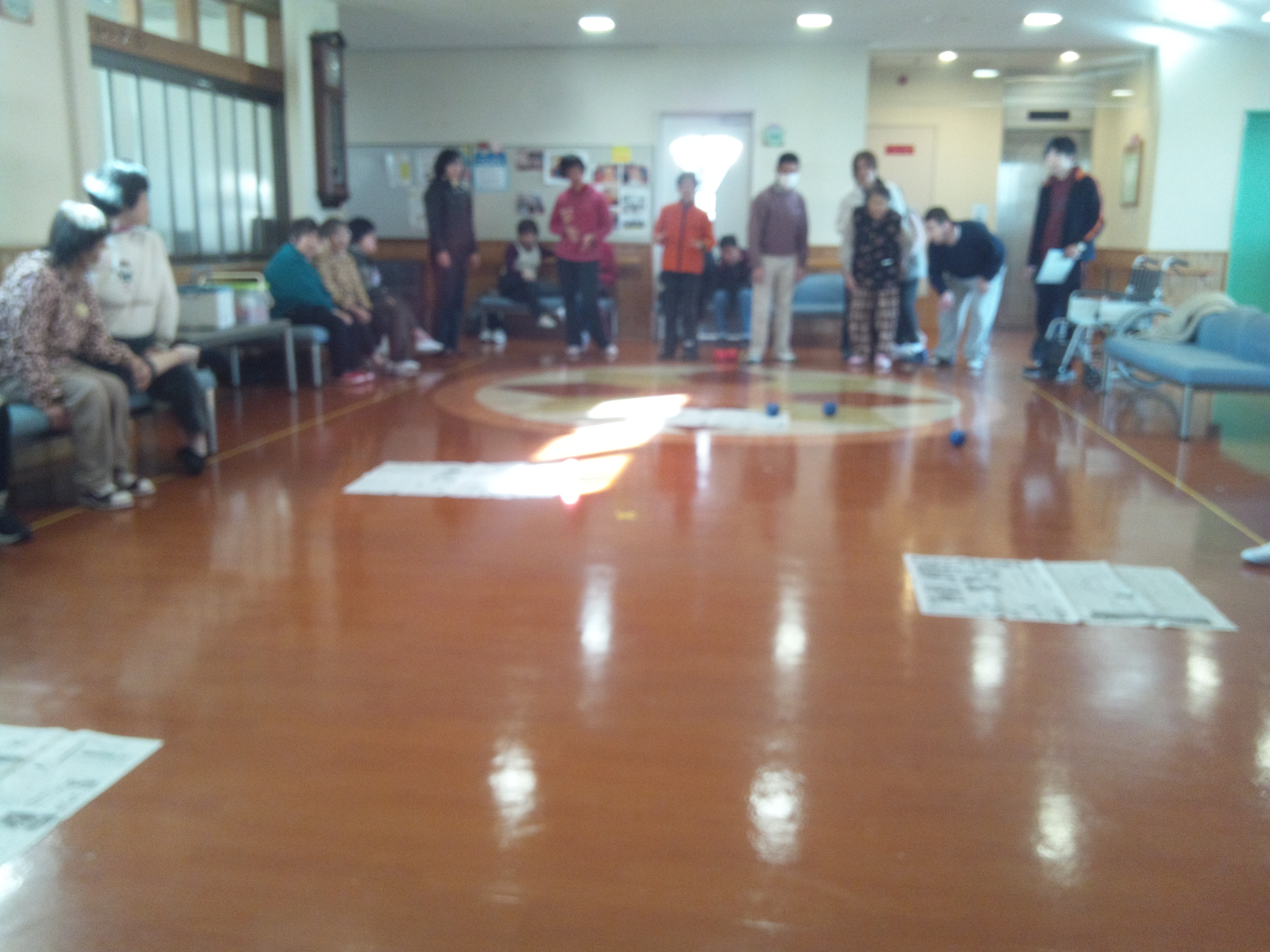 午後はふじの木園に行き、ボッチャ指導を行いました。