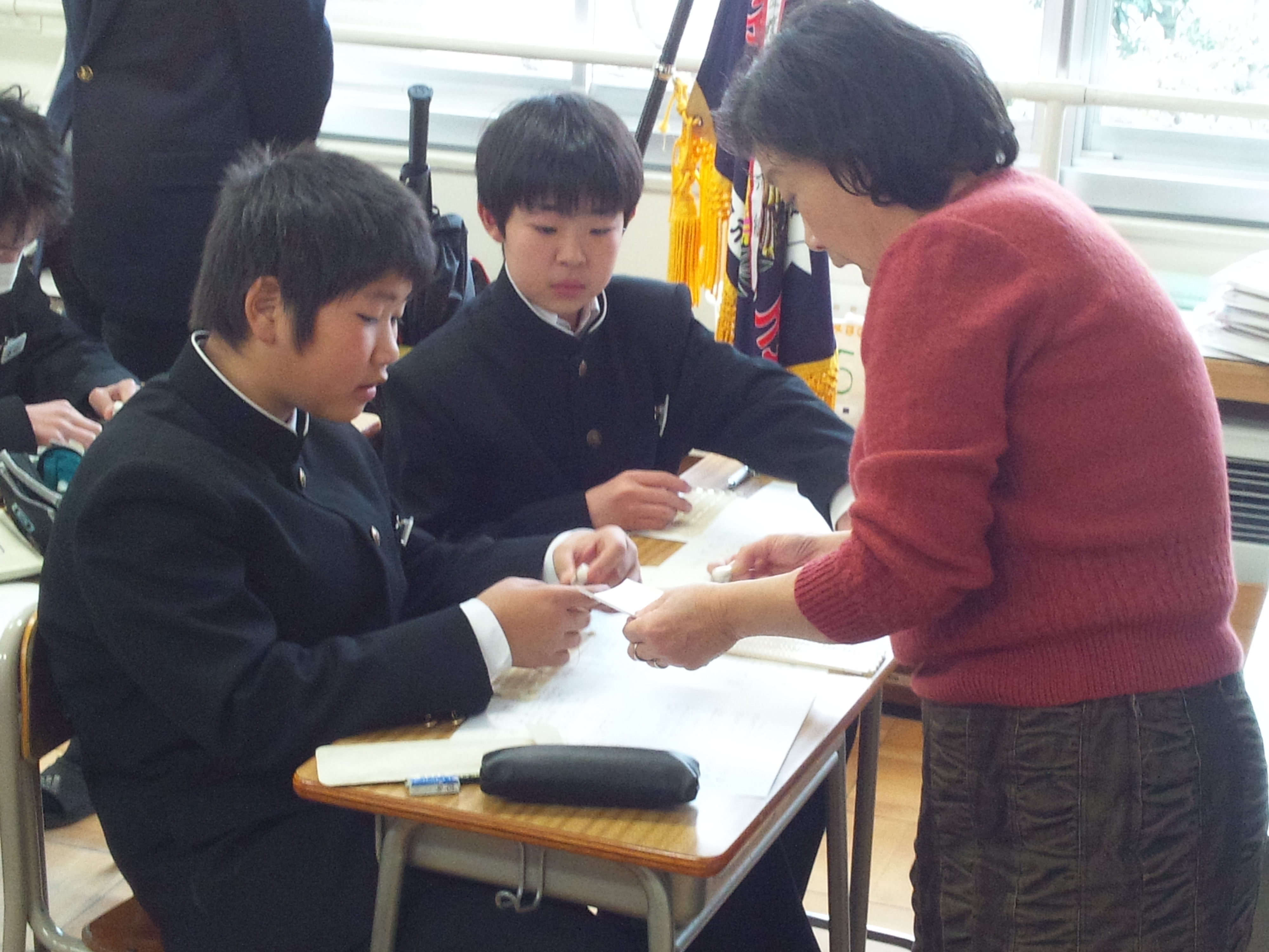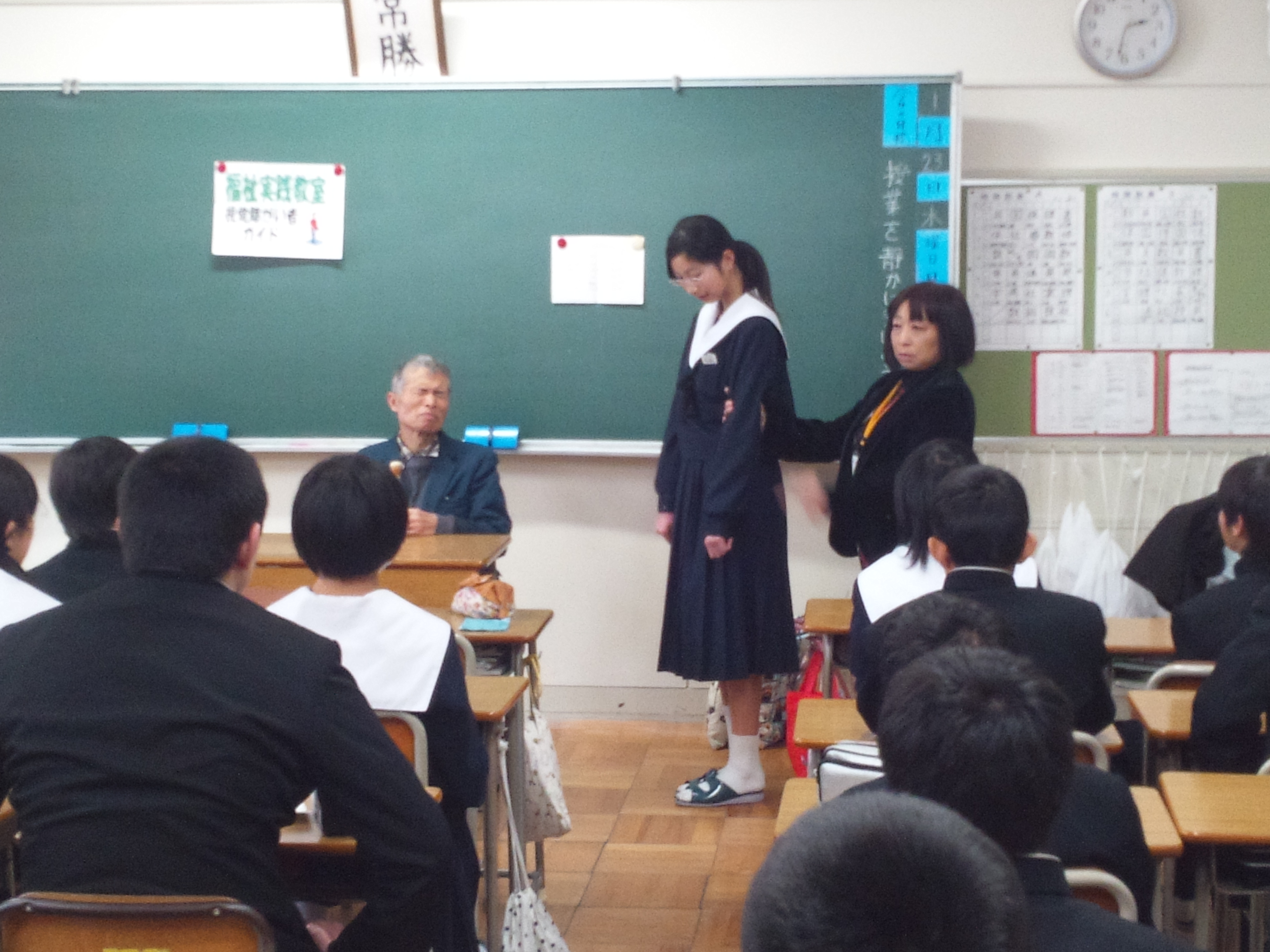 布袋中学校で福祉実践教室が開催されました 2013年1月23日