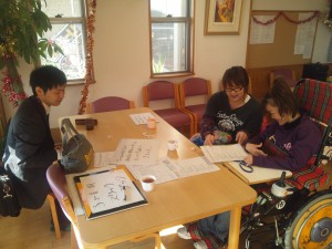 午前中は、くるみの里へお邪魔し、来週の布袋北小学校5年生との「ふくし交流会」でお話する内容について打合せを行いました。