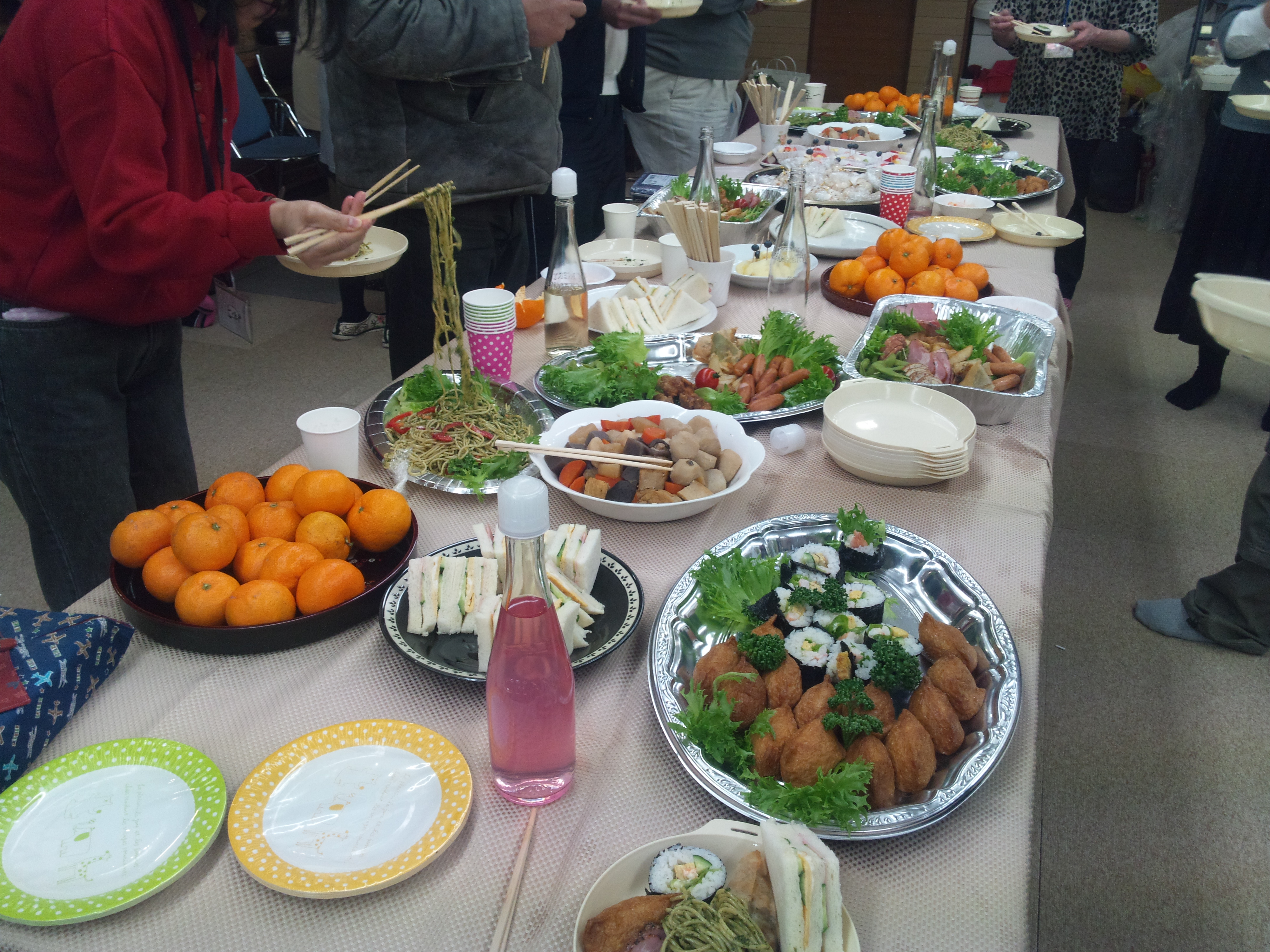会場はクリスマスの飾りつけがされていて、お食事もボランティアの方々が持ち寄ったり、豪華な食事でした。