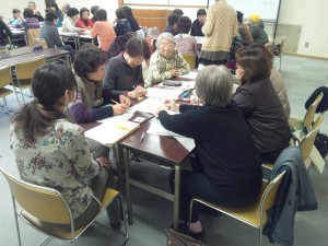 午後からは市民文化会館に行き、保健センター主催の「健康ボランティア養成講座」のグループワークの講師として参加しました。「フットケアグループ」と「食生活改善グループ」の2つのグループが合同開催している講座です。