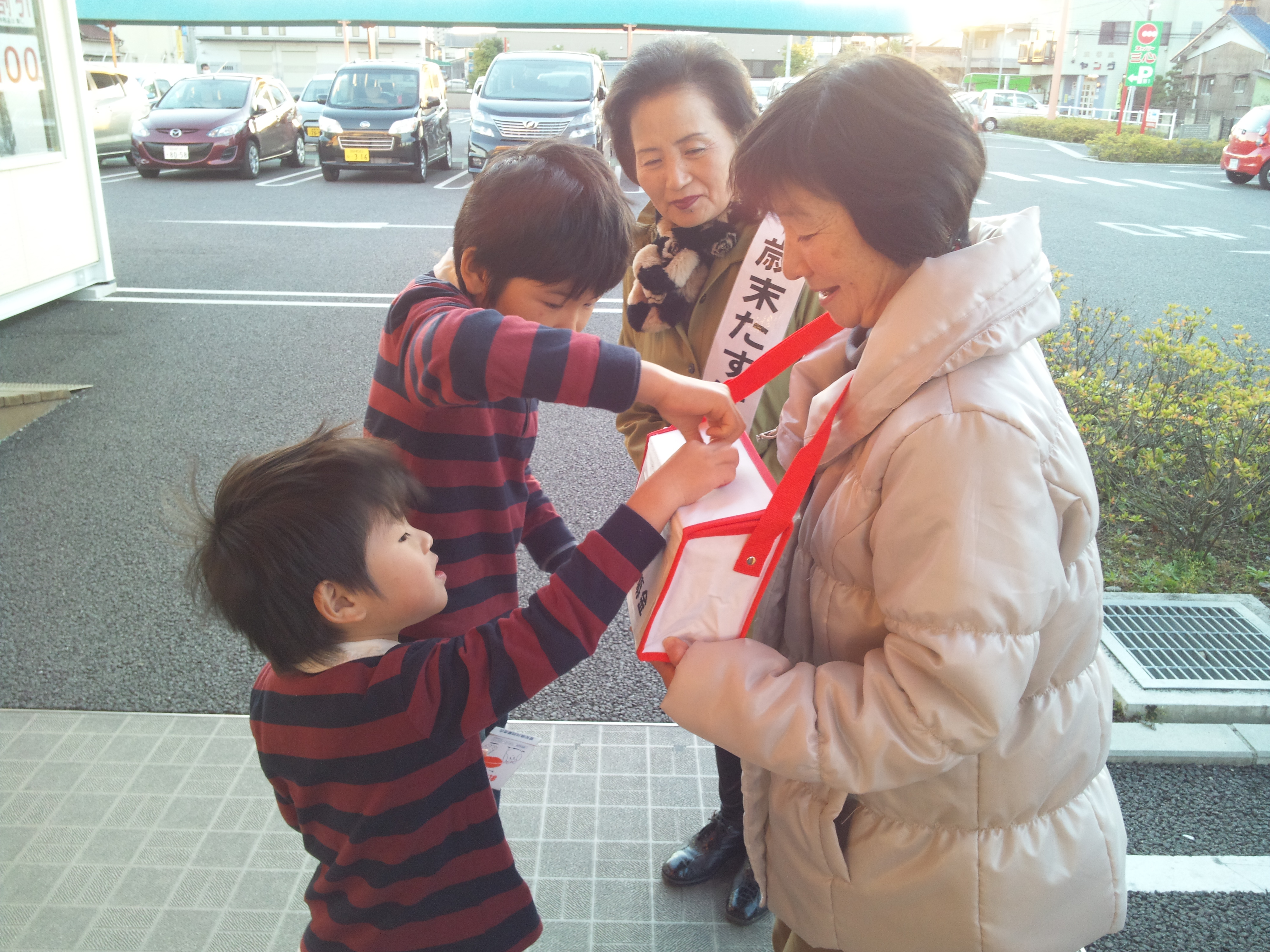子ども会の子ども達は、「歳末たすけあい募金にご協力をお願いします!」と大きな声を出して呼びかけをしていただきました。小さな子ども達も募金をしてくれて「ありがとう」とお礼の気持ちを伝えました。