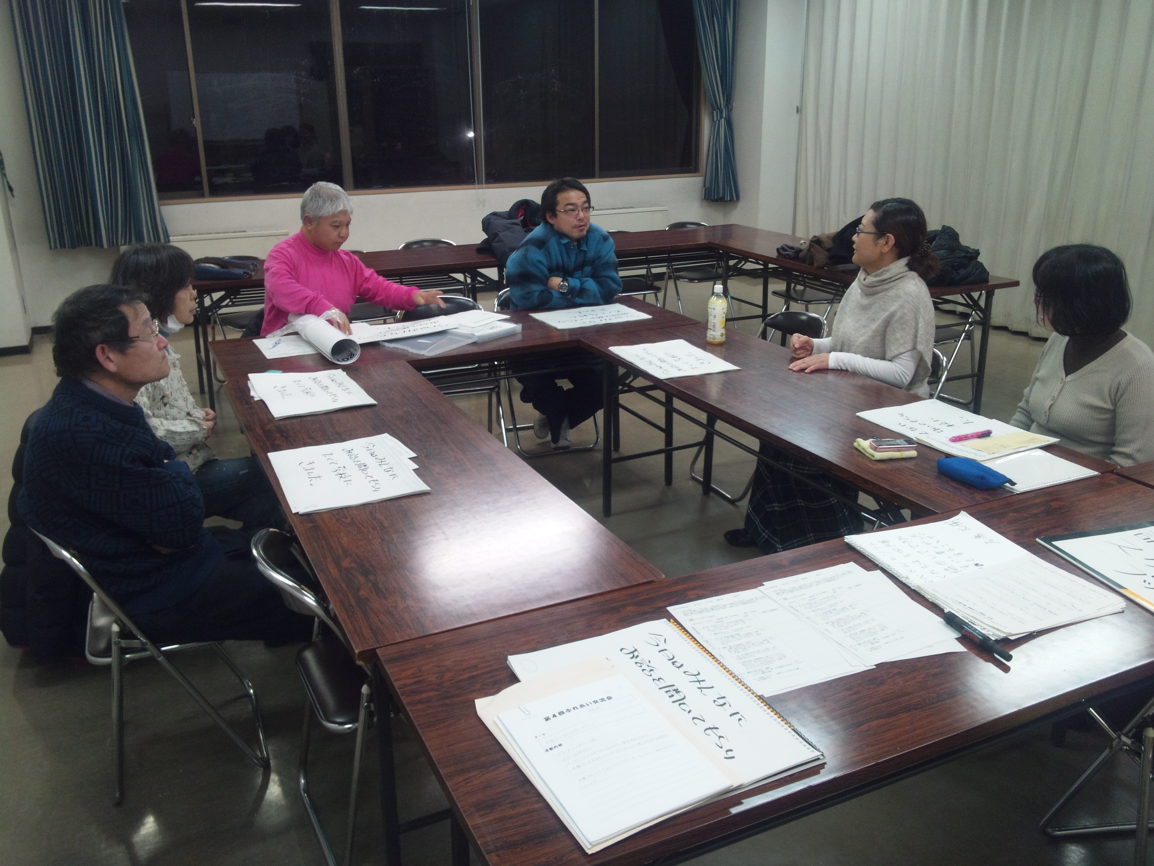 12月12日(水)の夜、月曜日に行った、布袋北小学校5年生の「ふくし交流会」の打合せの続きを行いました。