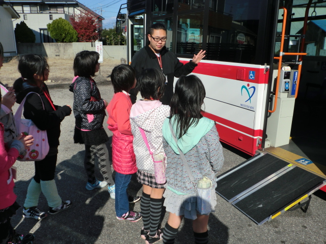 バス亭(宮田本郷)に到着し、くるみの里の利用者の方がバスに乗る場面を見学しました。ここのバス亭は発着所なので場所と時間に若干の余裕があり、丁寧に見ることができました。