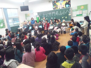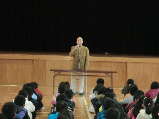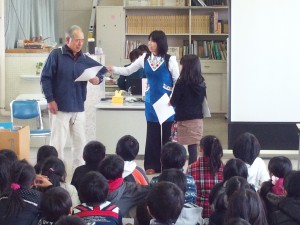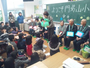 門弟山小学校で高齢者とのみかん交流会が行われました 2012年11月26日