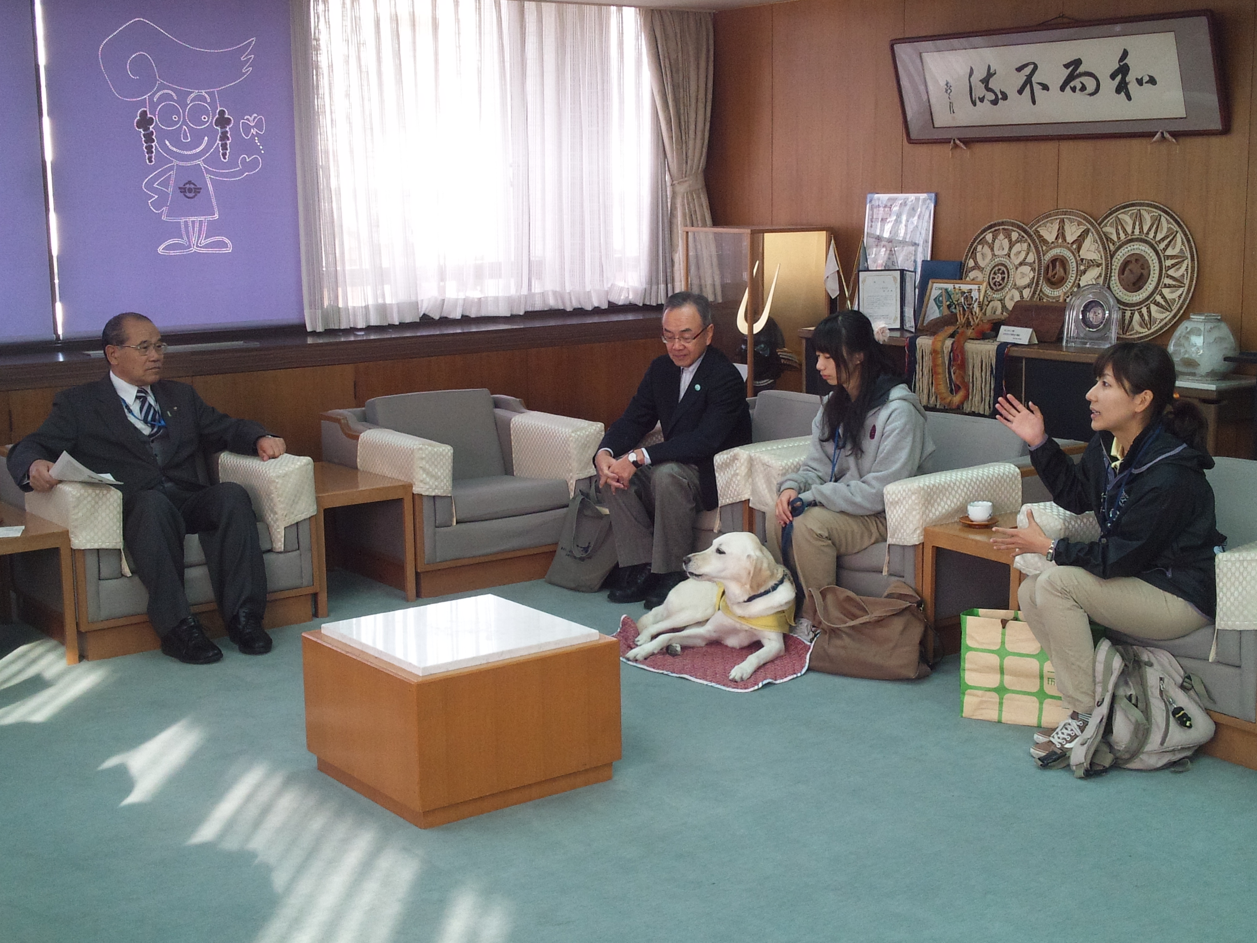 最初に江南市長への表敬訪問として、市長室にて堀市長へ日本介助犬協会の概要説明や介助犬育成の現状や役割についてお話をしました。