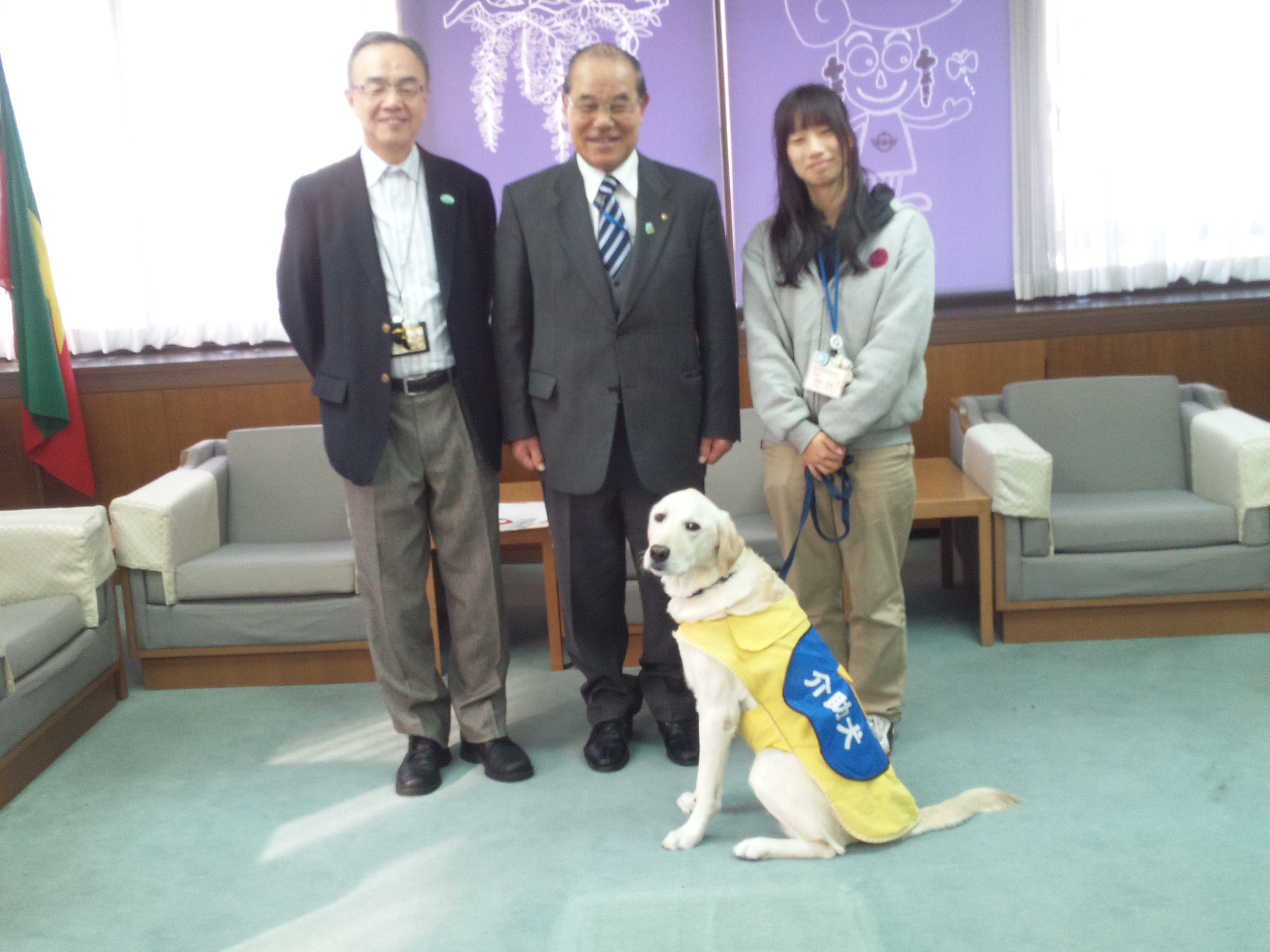 11月29日(木)、今日は(社福)日本介助犬協会の総合訓練センターの職員の方々と介助犬のPR犬(グレース)が江南市へお越しいただきました。