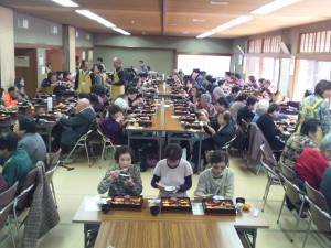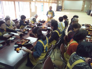 食事会が終わり、片づけも一段落したところで、民生委員さんのみなさんと食事をしました。午後2時を過ぎていましたので、お腹もぺこぺこでした。