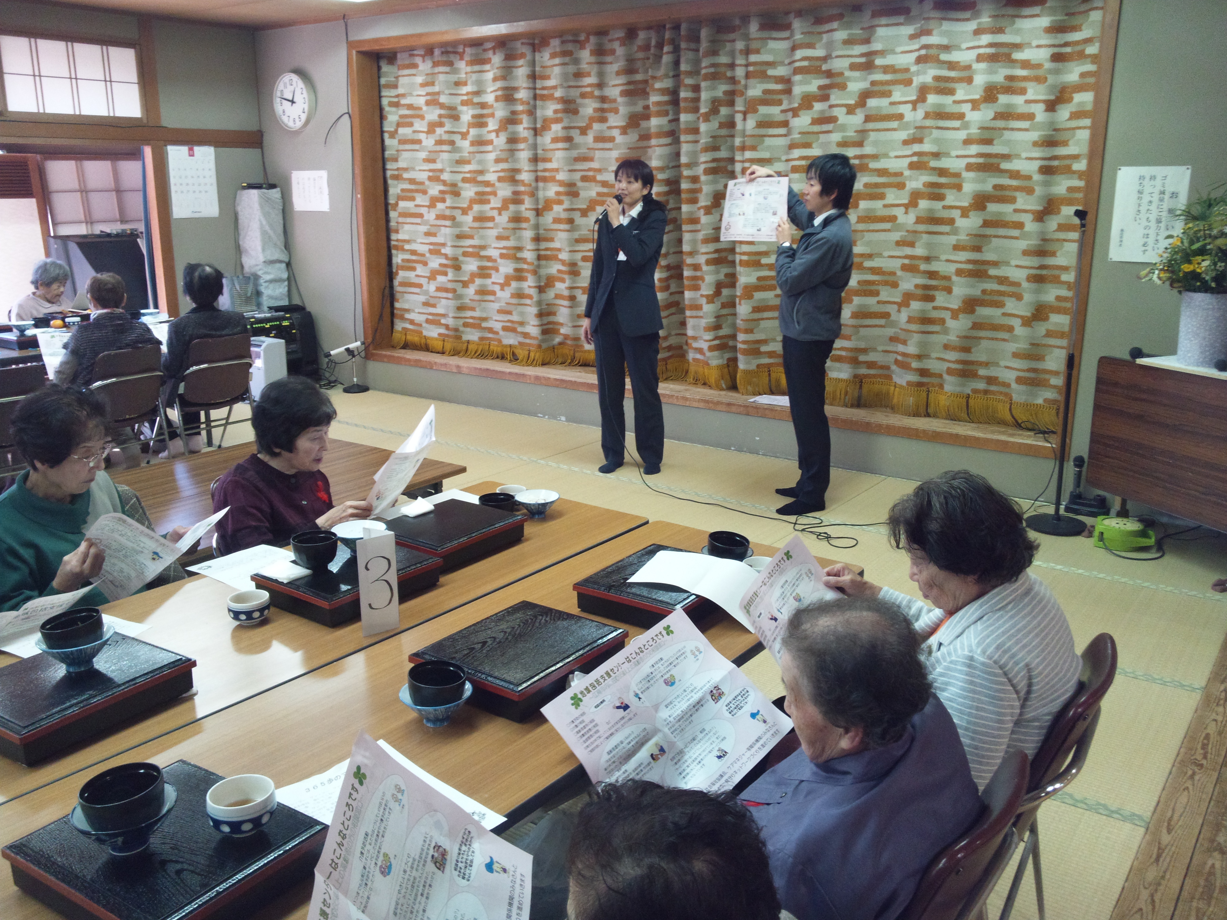 次に、地域包括支援センターの職員にお越しいただき、活動紹介と認知症予防や介護予防のお話をしていただきました。