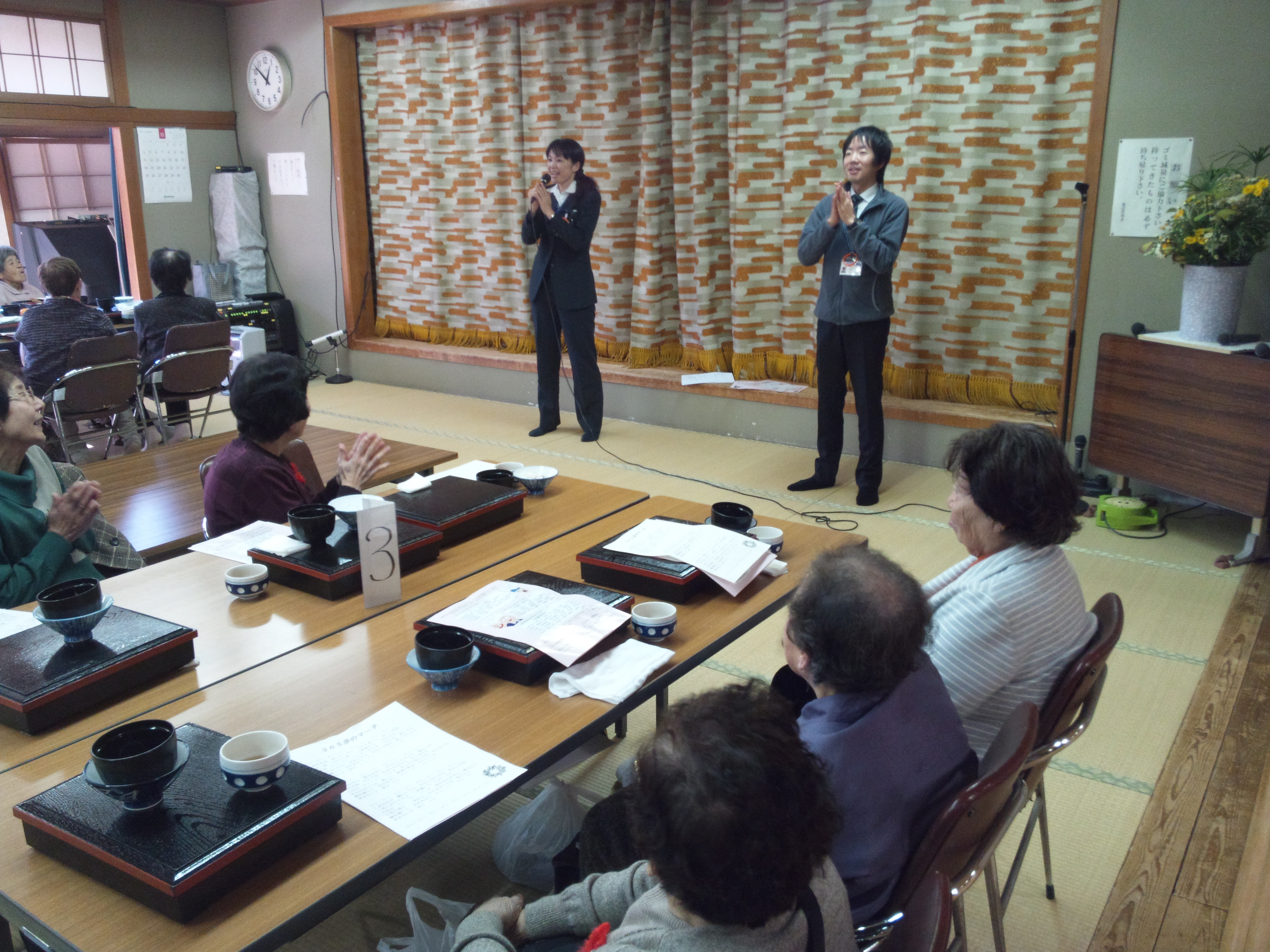 民生委員さんは食事会で終わりではなく、地域に戻ってからも参加者に今日の記念のメッセージカードを渡したり、欠席された方にお土産を配ったりといった訪問活動をされるとのことで、日頃からのつながりが大事だと改めて感じました。