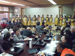 みんなと一緒に歌おうということで、「ふるさと」と「みかんの花咲く丘」を歌いました。