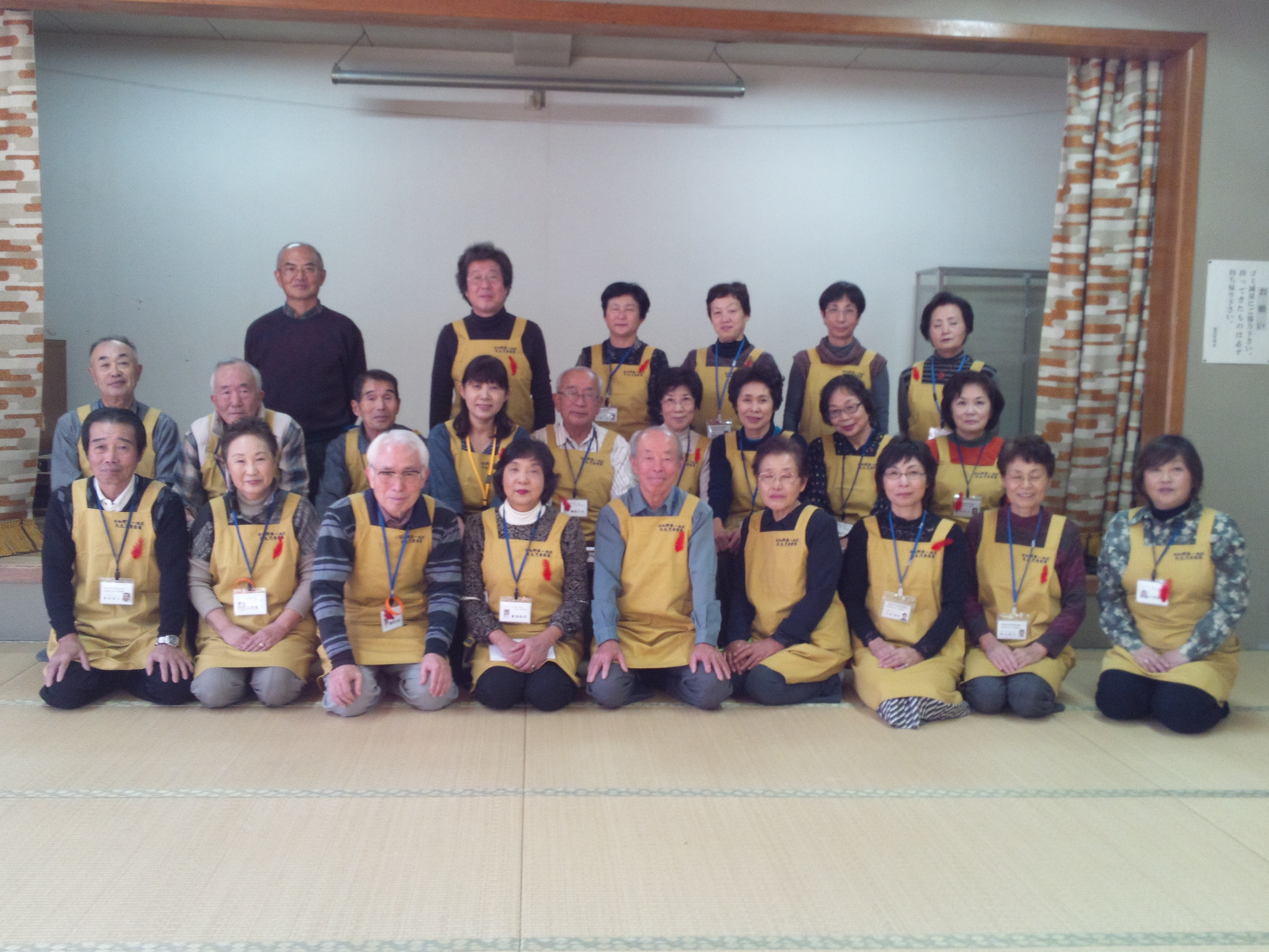 最後に民生委員さんの集合写真を撮影させていただきました。民生委員のみなさんは、土産の荷造りから、受付、お茶出し、配膳、写真撮影、片づけまで、ご協力をしていただきました。