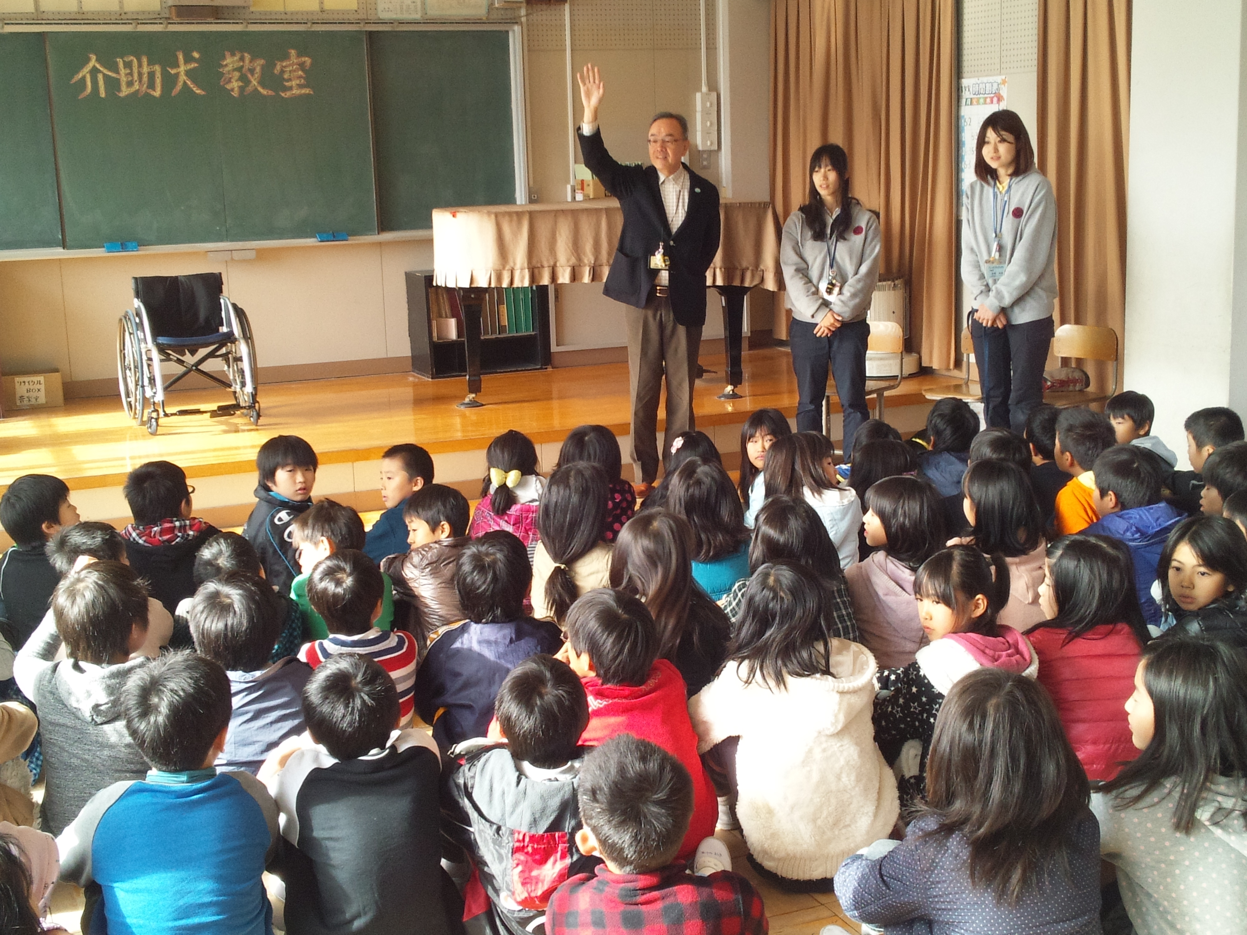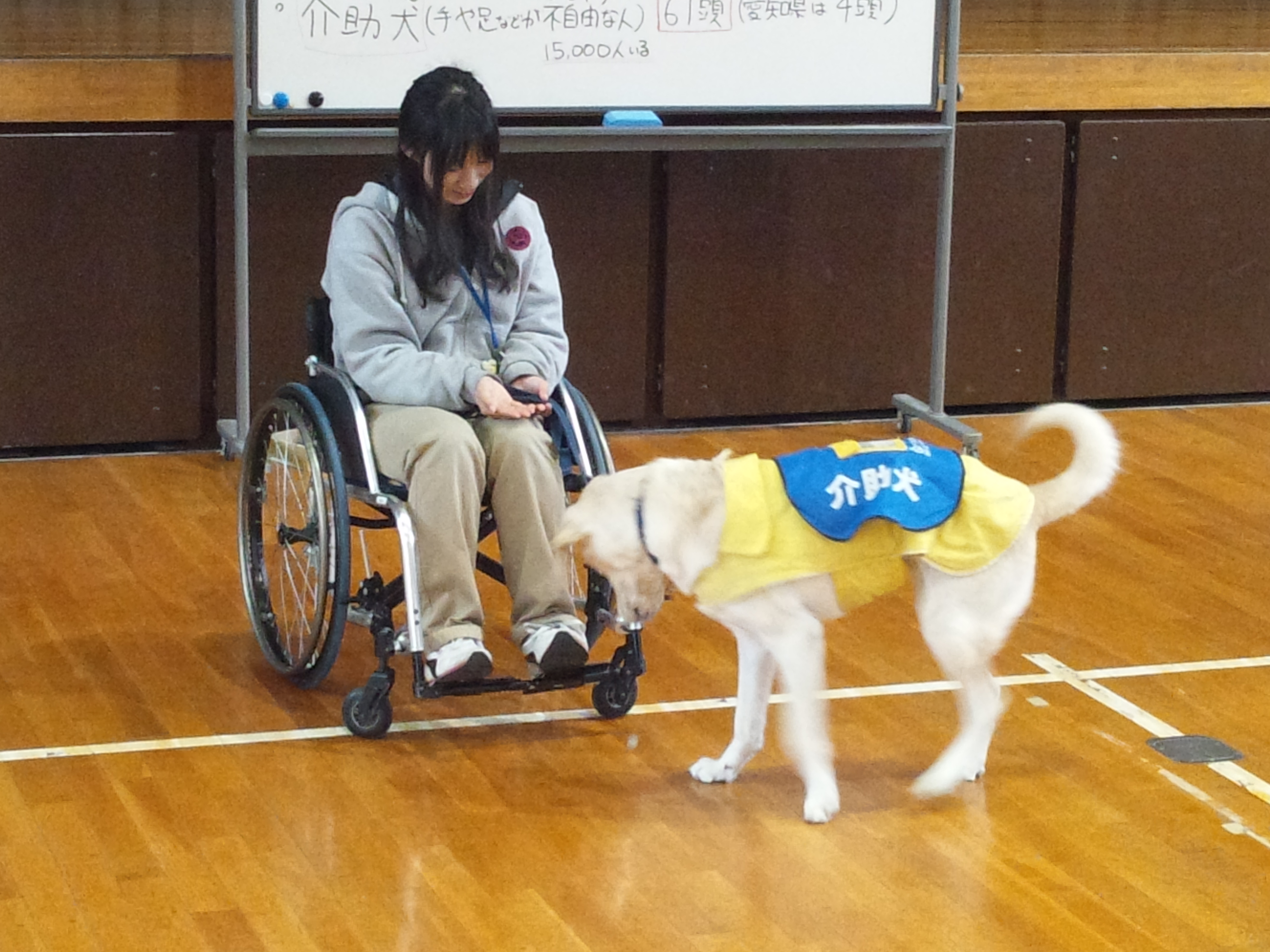 午前中は、門弟山小学校4年生が介助犬教室を行いました。