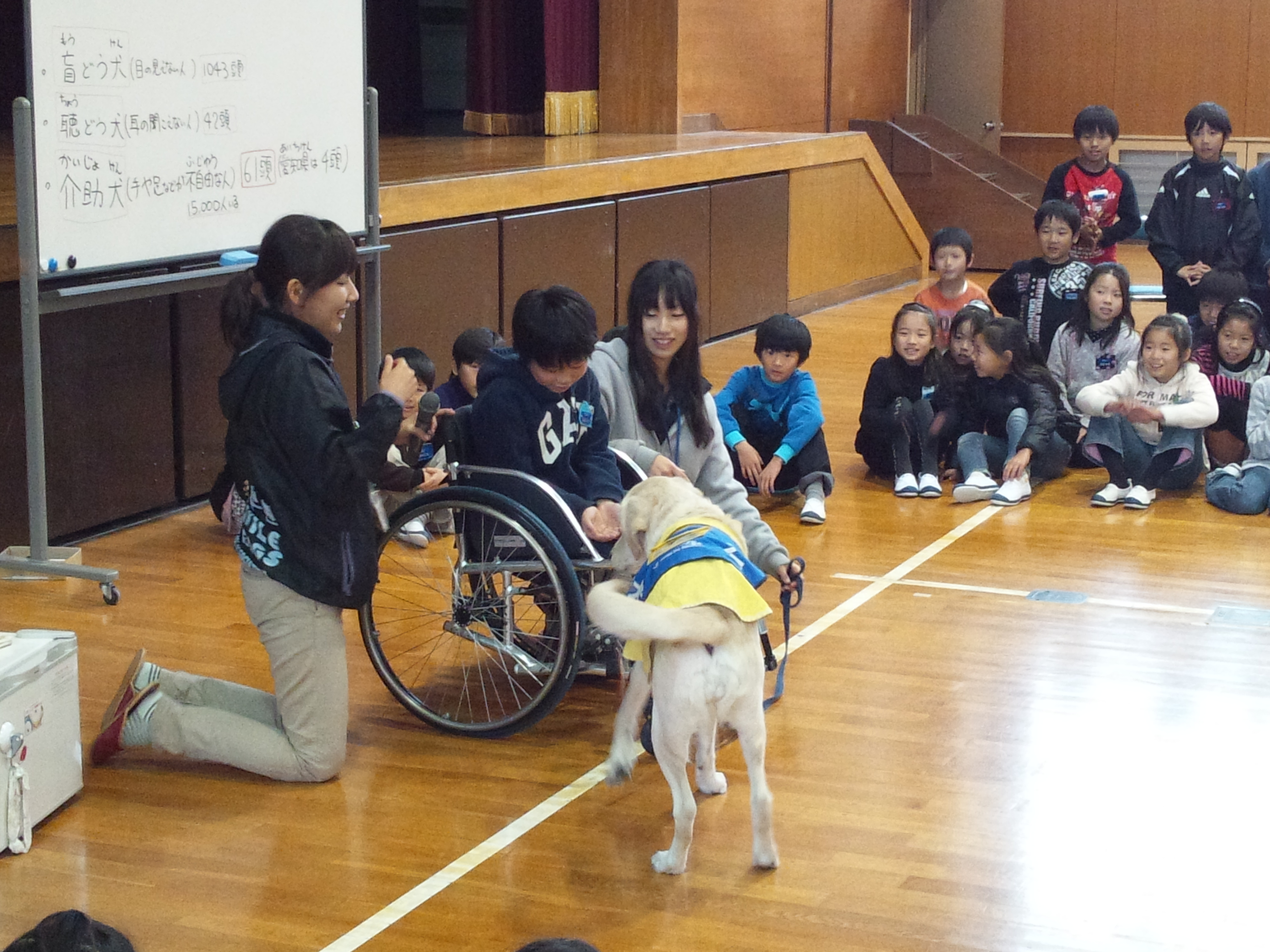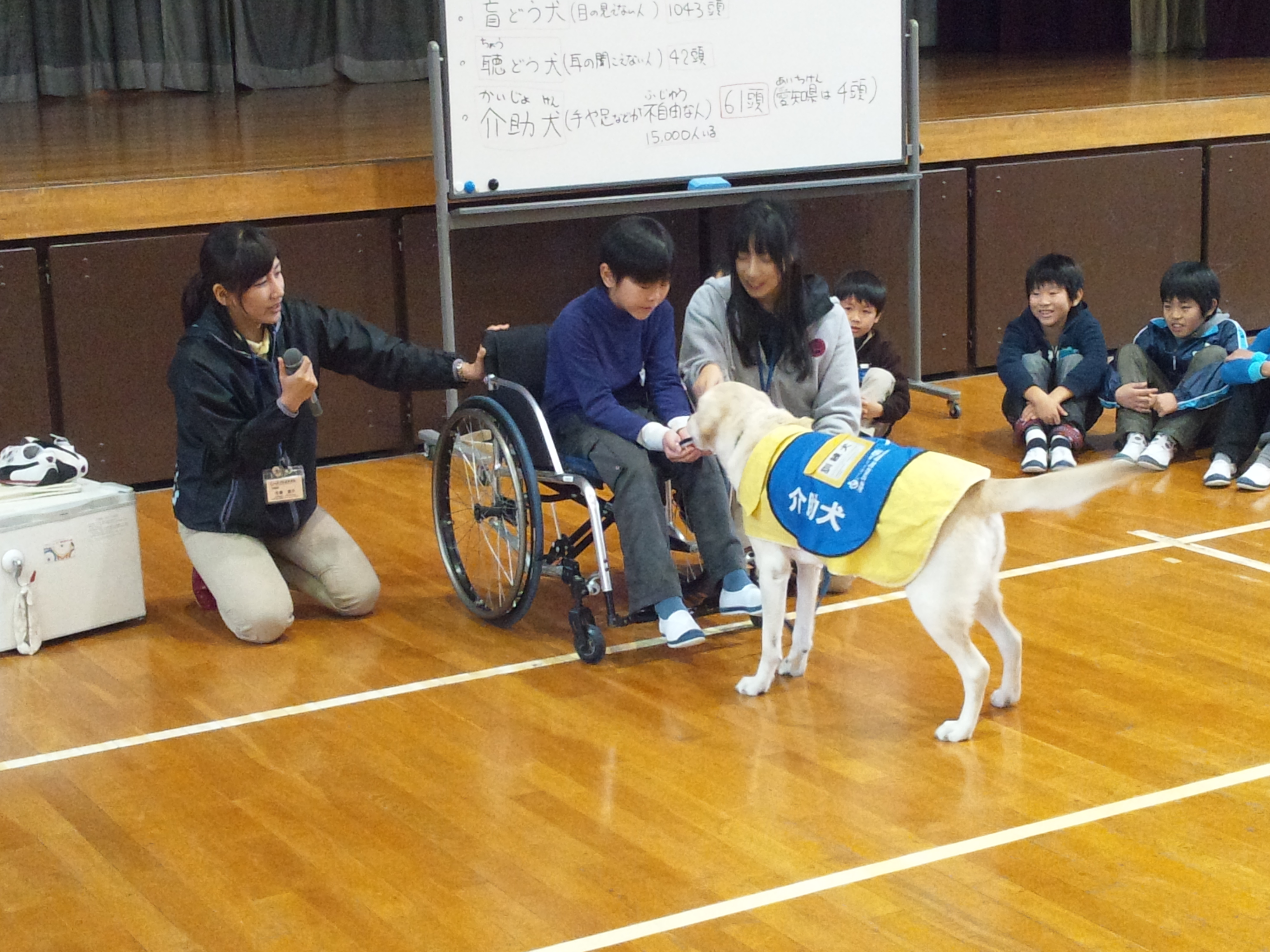 午後からは、布袋小学校4年生の子ども達が介助犬教室を行いました。
