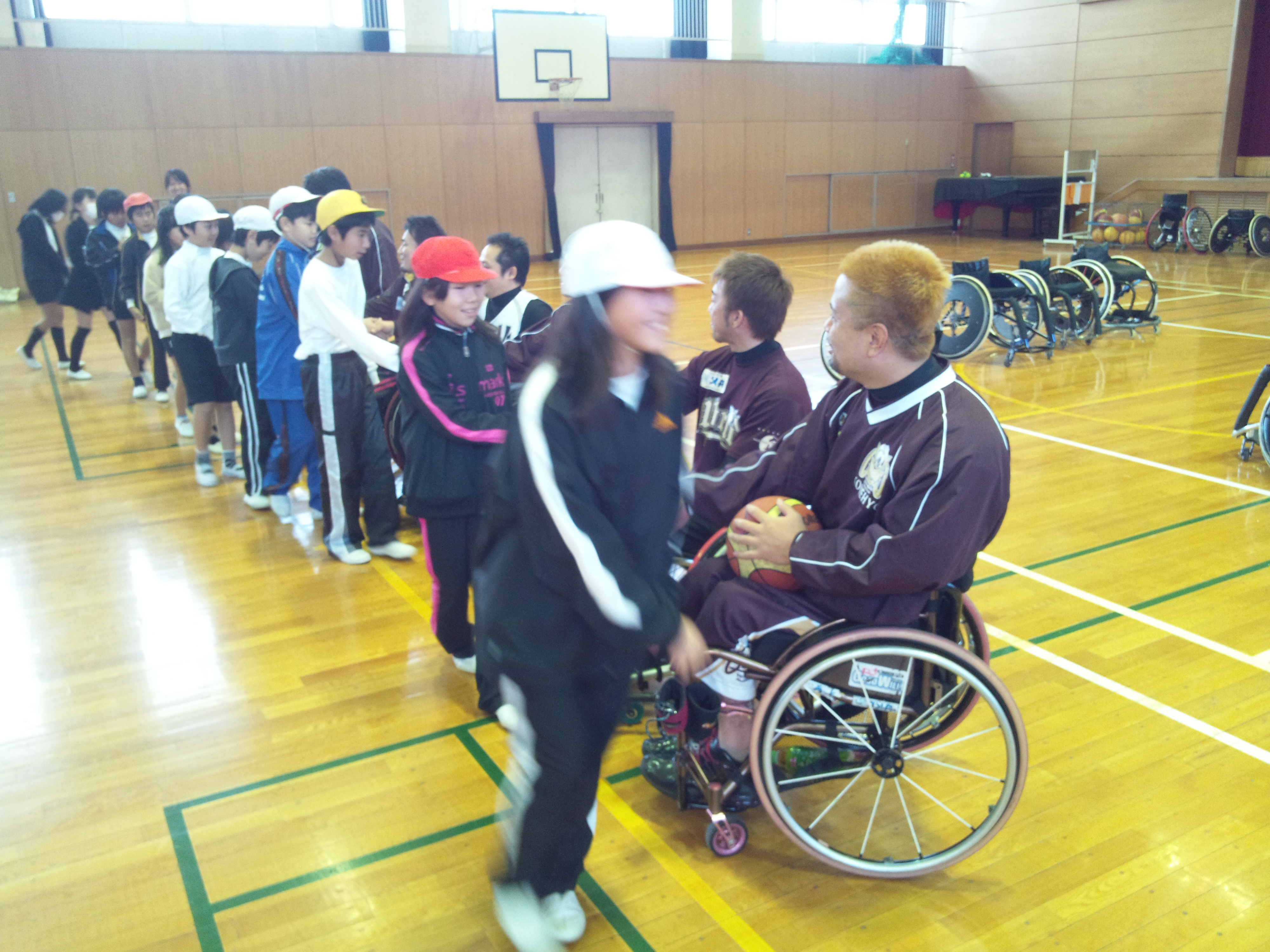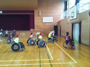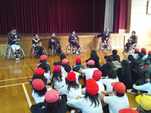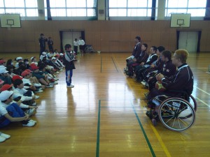 門弟山小学校で車いすバスケ教室を行いました 2012年11月27日