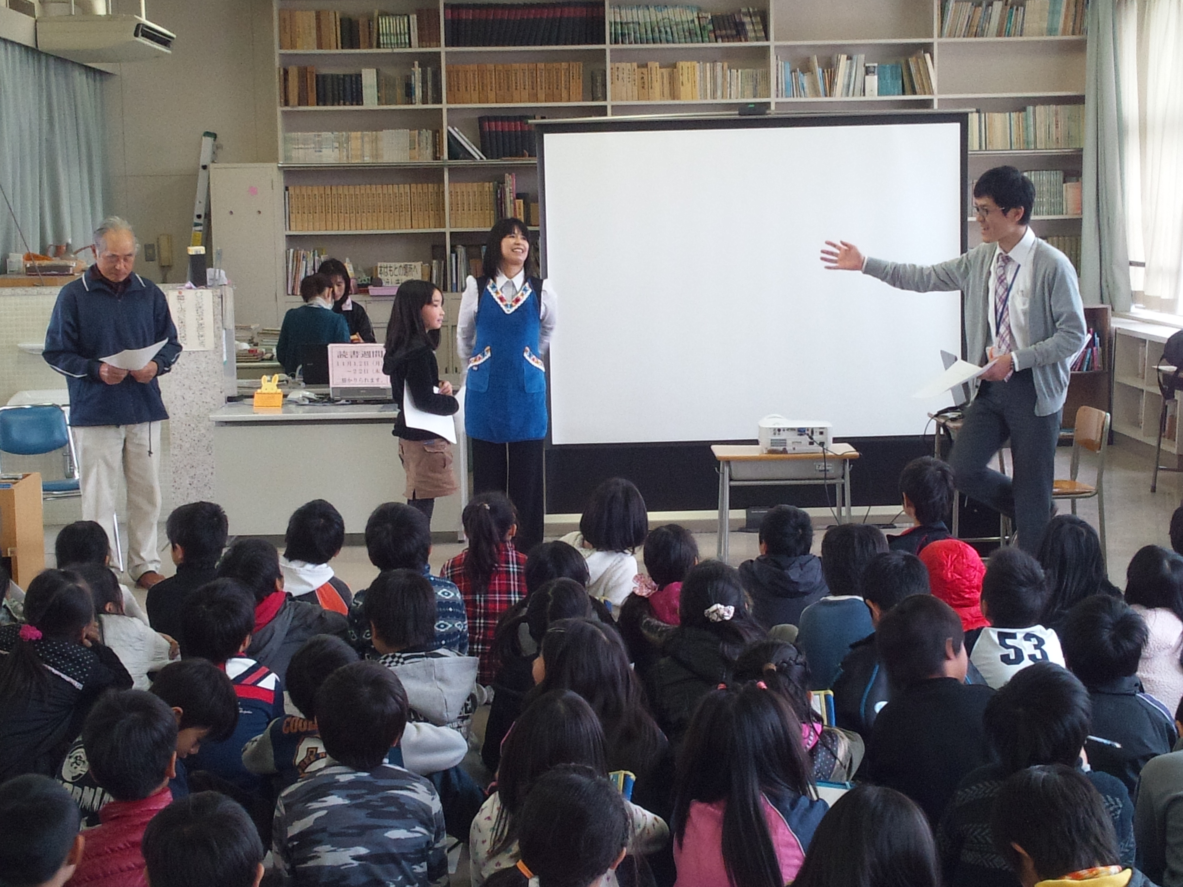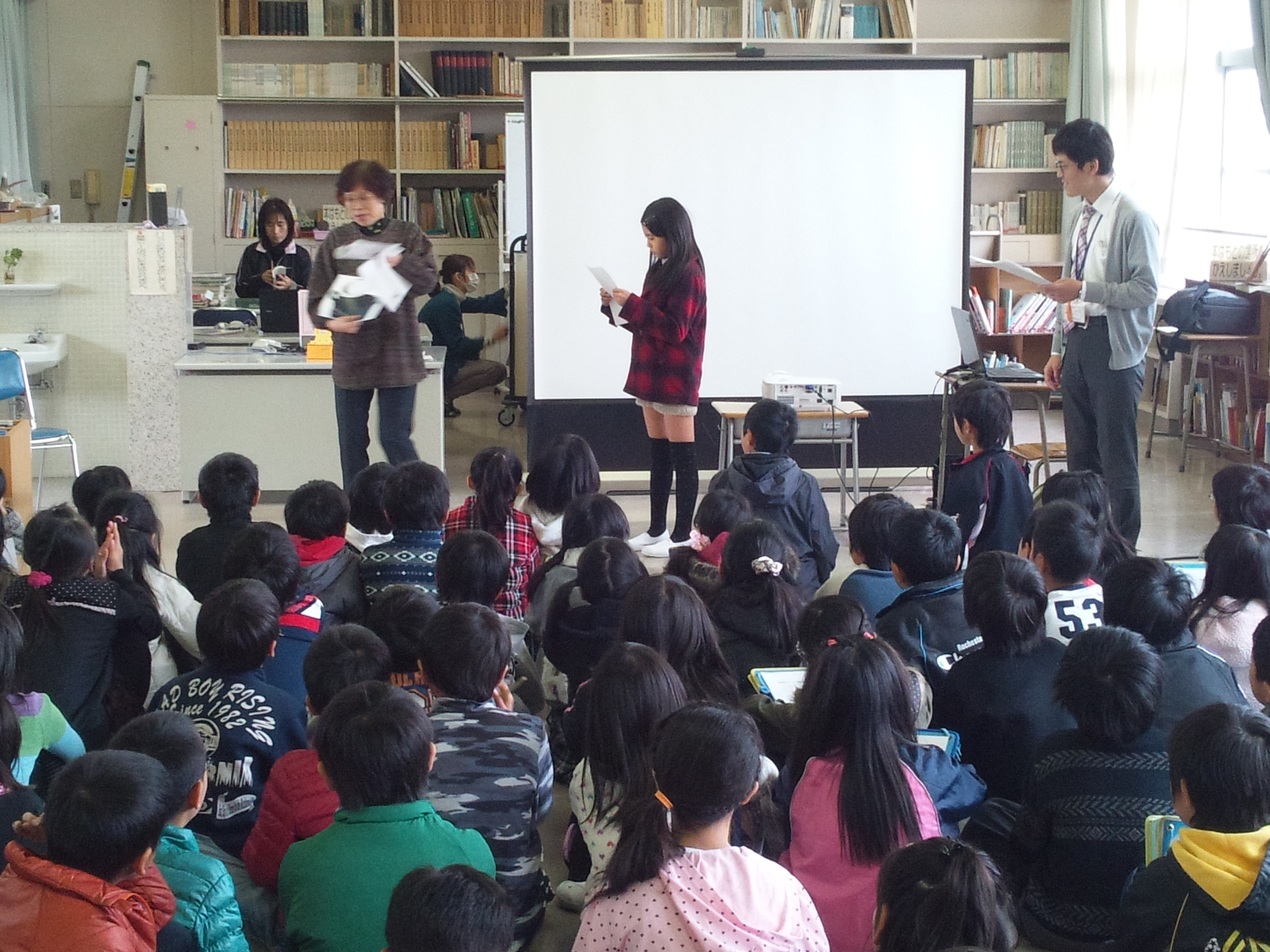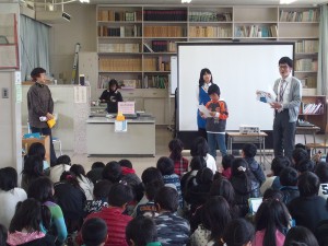 今日のキャラバンメイトは私も含め5名でお邪魔しました。4年生は4クラスということもあり多くの子ども達がいました。