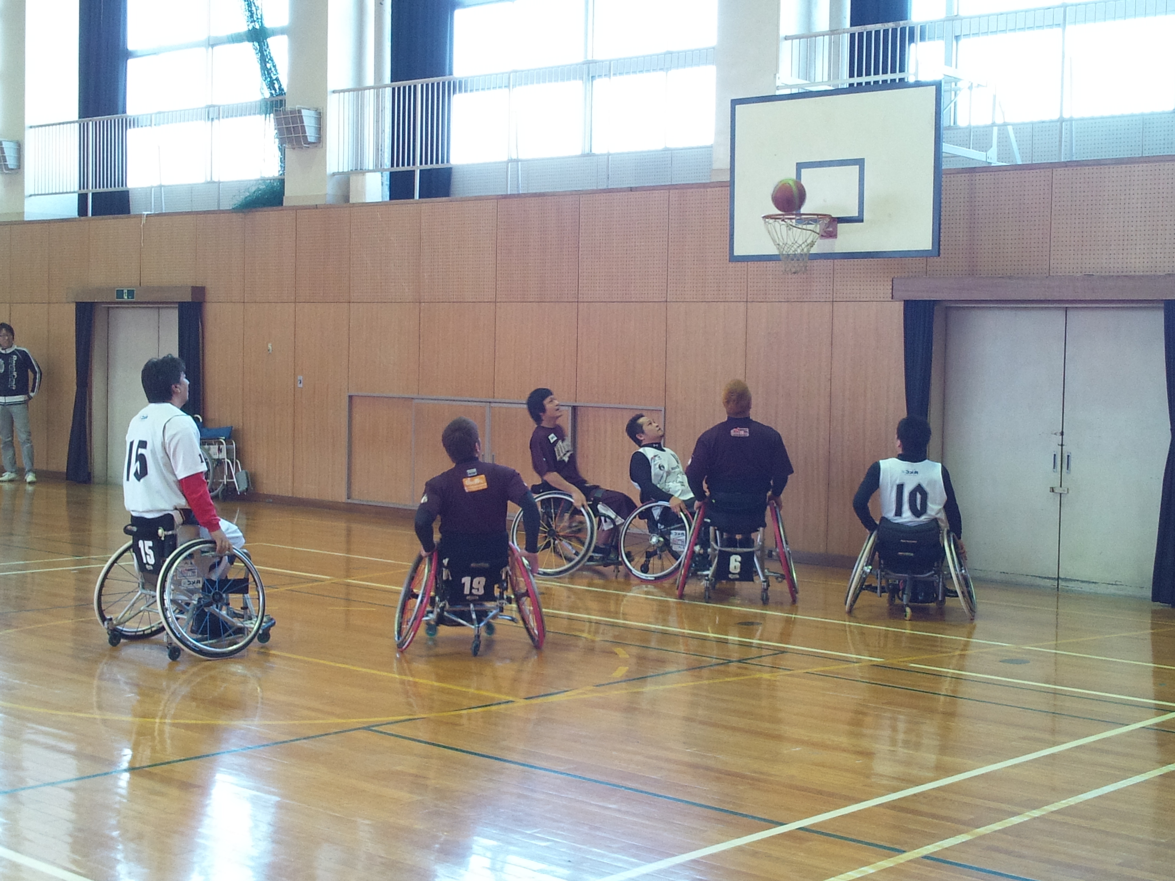 次にシュート練習を行いました。車いすに乗りながらシュートをするのは難しかったですが、頑張っていましたね。