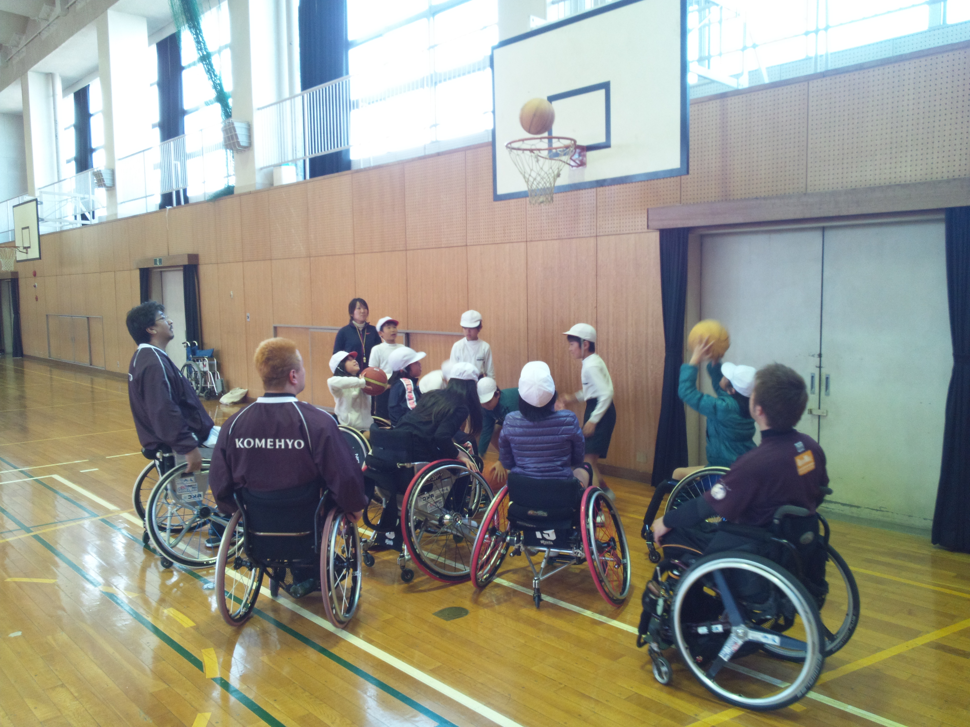 11月27日(火)の午後、門弟山小学校5年生が「車いすバスケ教室」を行いました。