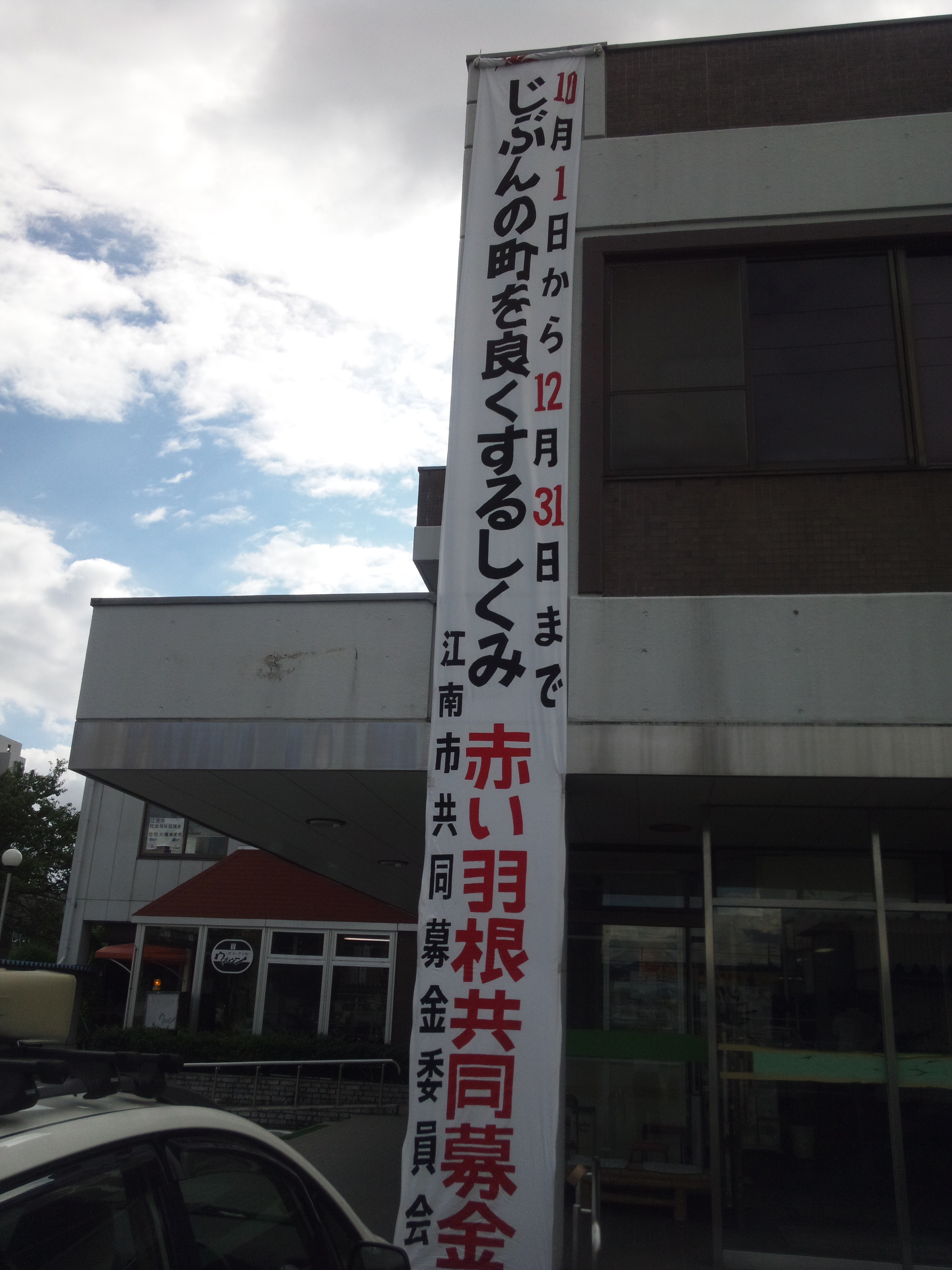 毎年10月1日は早朝より、江南駅・布袋駅で江南市共同募金委員会の役職員と街頭募金を実施しているのですが、台風17号の動きを見ながら、早めに中止を決定しました。江南駅・布袋駅での街頭募金は、延期となりましたが、土曜日には市内スーパー各所で街頭募金を予定しています。