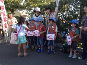 カブの子ども達は、とても大きな声で「赤い羽根共同募金にご協力をお願いしま~す!」と呼びかけてくれました。