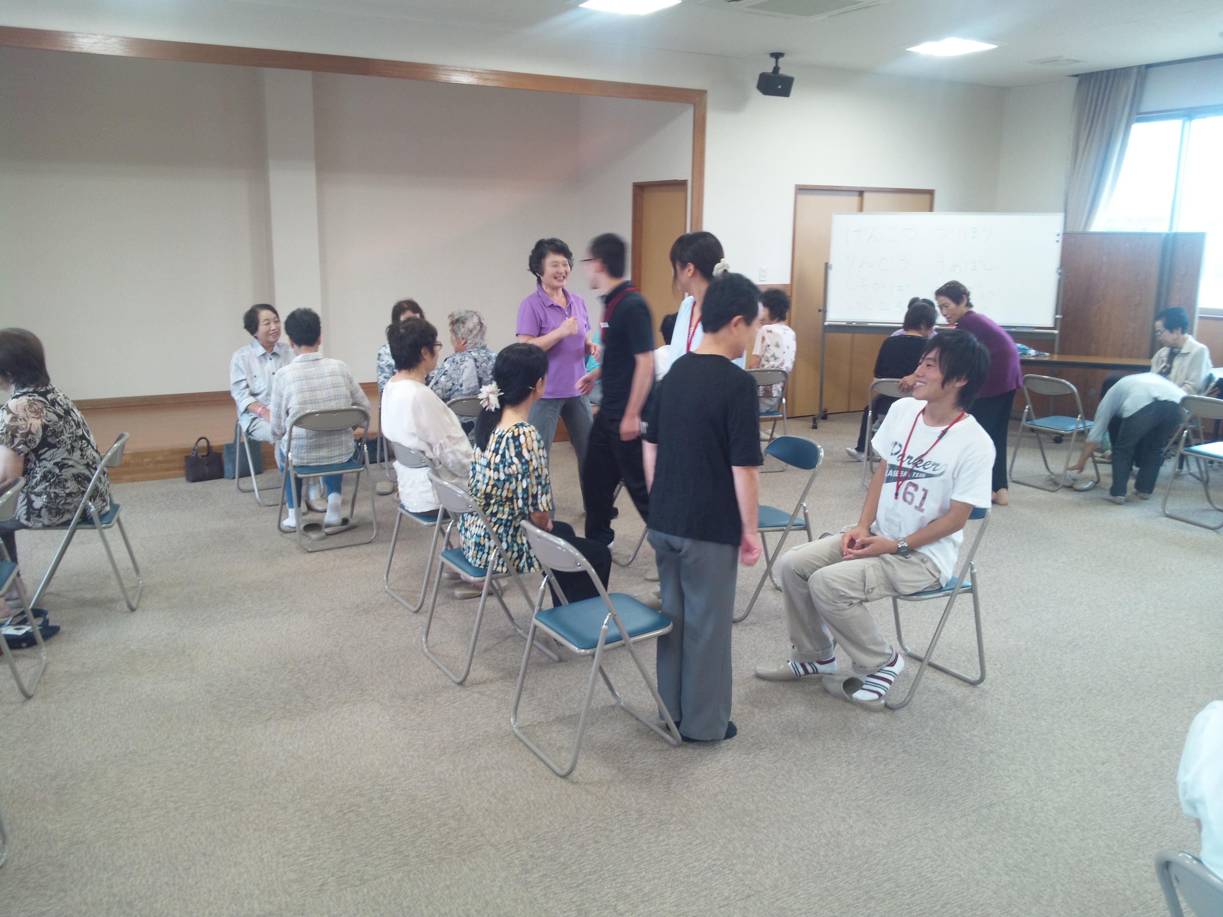 立ったり、座ったり、ジャンケンで勝った人が移動したり、いろいろな方々と交流を深めることができました。握手するとドキドキしてしまいました…♪