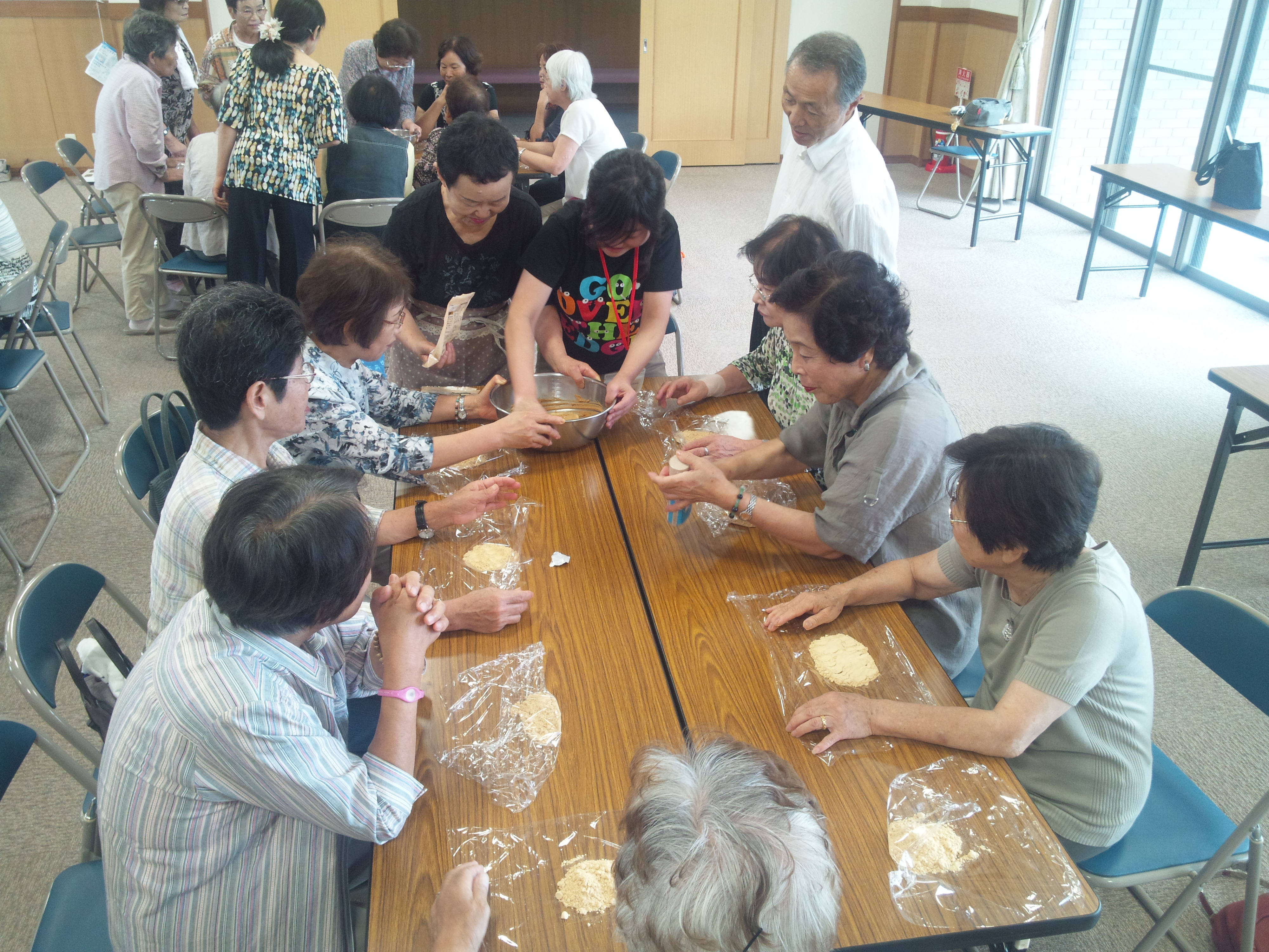 今日のメイン活動は「げんこつ飴づくり」でした。きな粉と水あめと砂糖を混ぜながら、参加者一人ひとりが作っていました。