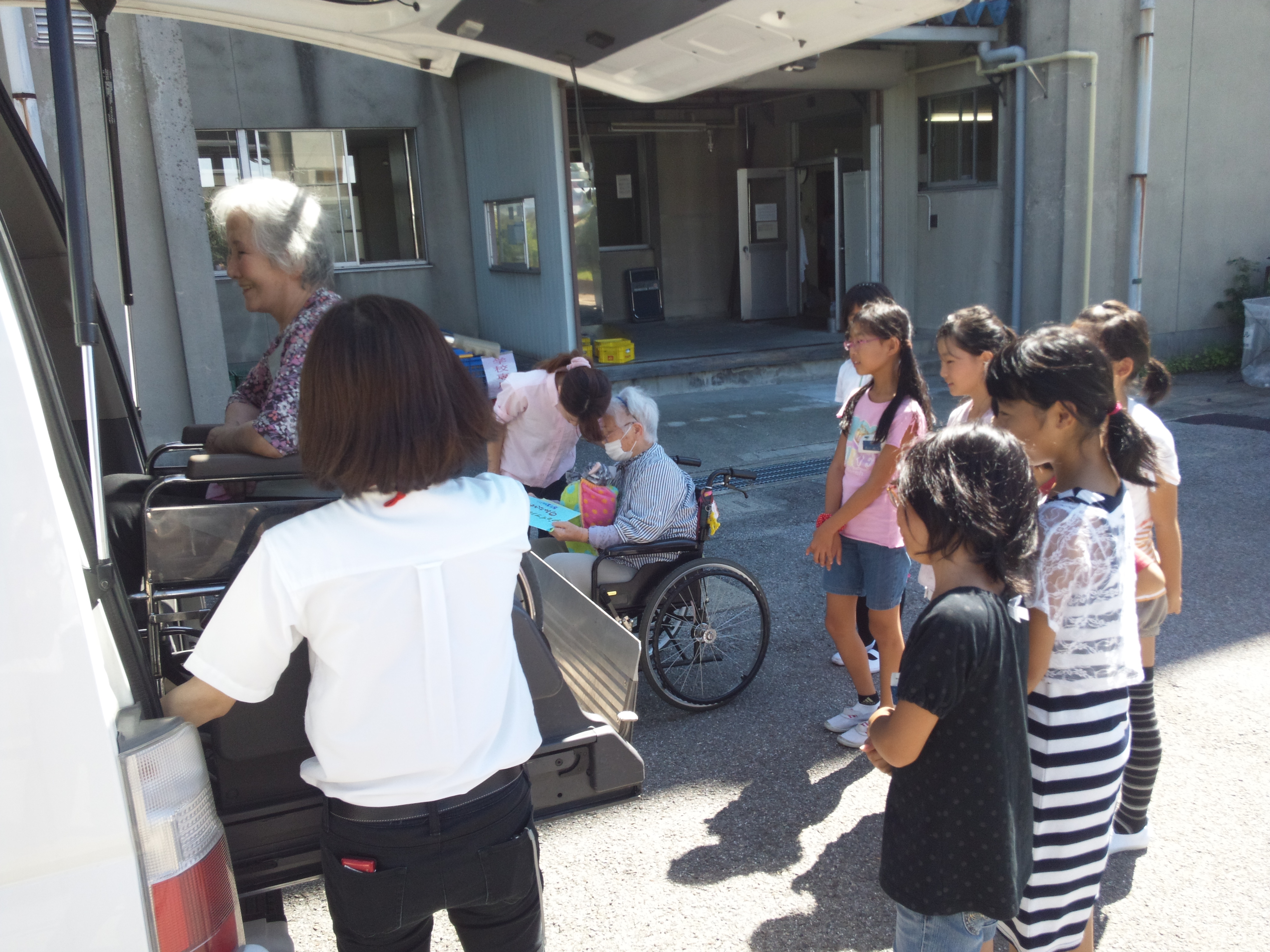 子ども達は、利用者の方々が施設の車に乗ってお見送りまでしていただき、利用者の方々から「ありがとう、ありがとう」と言葉をいただきました。