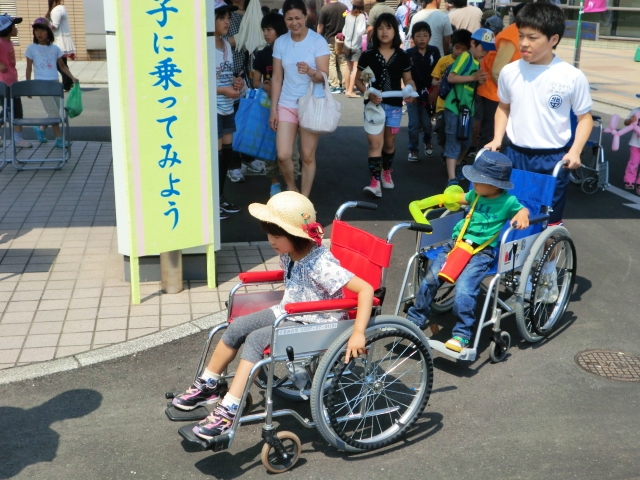 明日は天気も良いので、車いす体験が実施できそうです(去年は大雨で実施できませんでした…)。