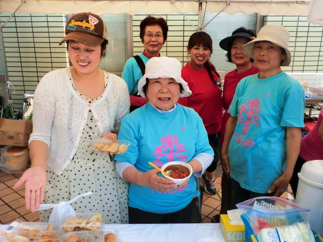 江南市国際交流協会のブースです。カレーライスと揚げ餃子を美味しくいただきました。(安くてとっても美味しかったです)