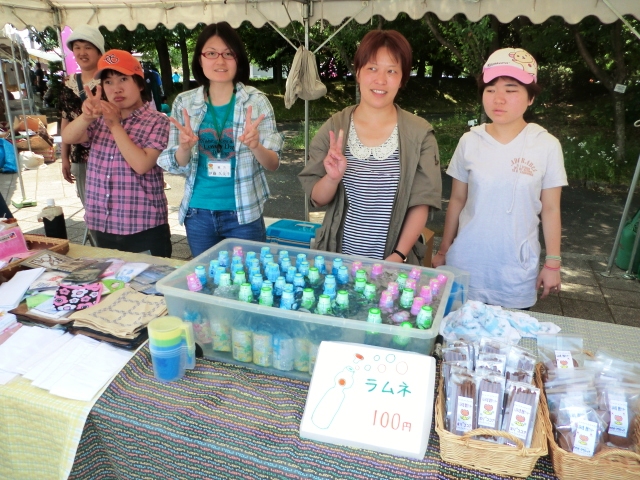 くるみの里のブースです。いつも美味しいパンを買っていますが、今日はドラえもんラムネを買って喉を潤しました。