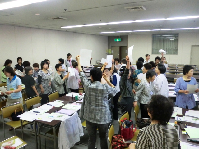 今日はフットケアグループと食生活改善グループが合同で講座を開催し、ボランティアについて学ぶ日でした。50名近くという参加者の多さに緊張、緊張でした。