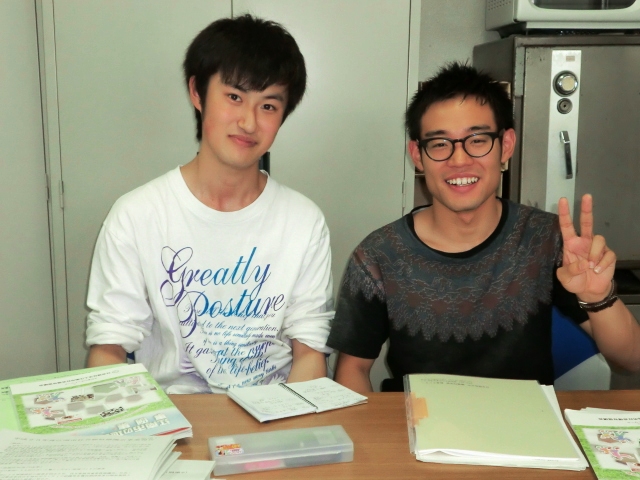 左側が田中くんで、右側が長江くん。若くて、真面目な好成年ですね。今日から来週の金曜日の8日間の実習でたくさんのことを学んでいただきます。実習指導者の私がドタバタしてます…。