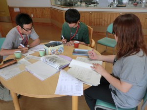 実習生と今日の実習のまとめとして、なぜ点訳活動をボランティアが担っているのかということを話し合いをしました。